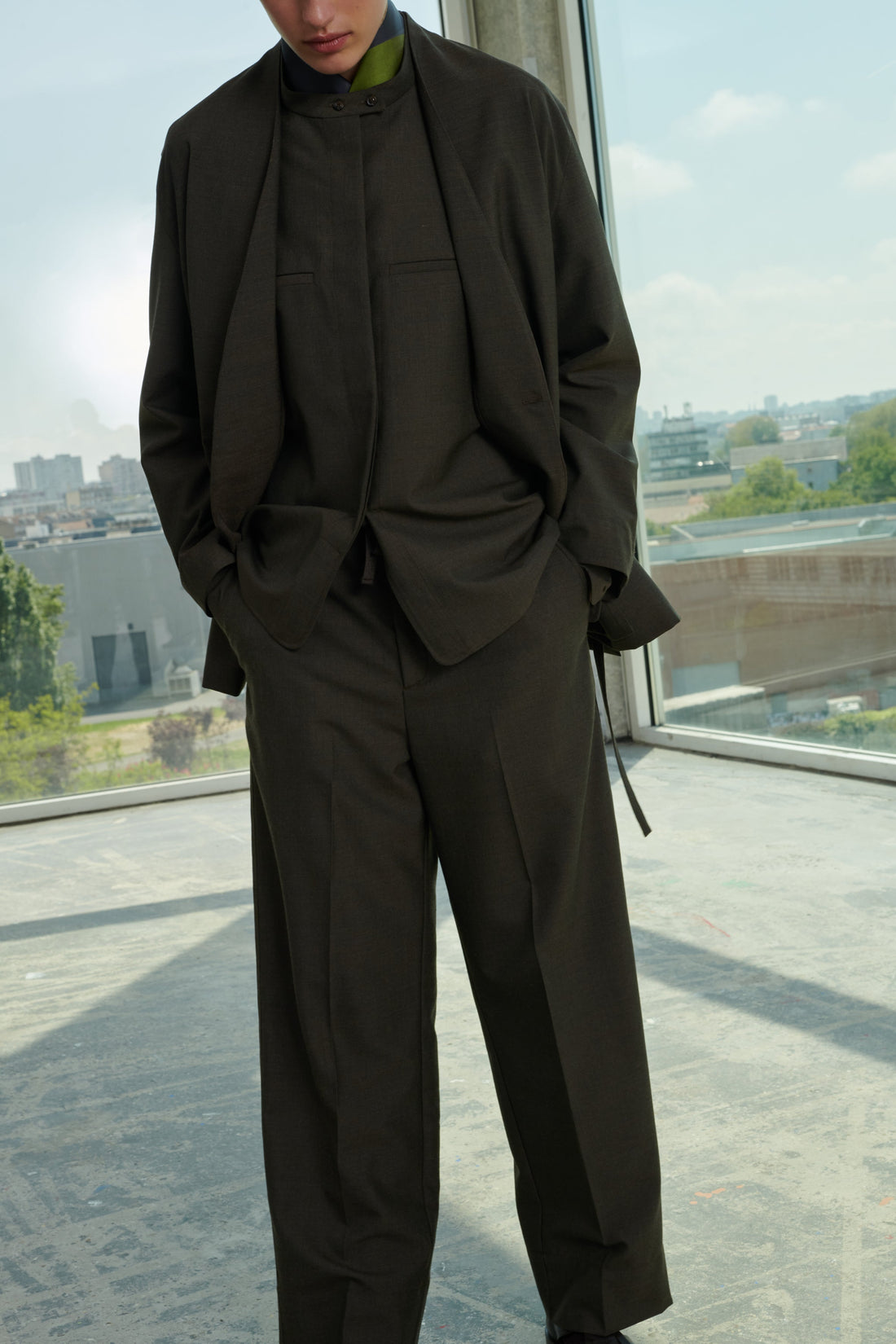 Notre toile de laine est iconique du vestiaire Sœur. C'est un lainage souple, dense et parfait pour maintenir les volumes tout en étant confortable. Le polyester permet d'éviter le froissage, sa tenue est impeccable et le tissu facile d'entretien. Elle est ici tissée avec des fils de laine de couleurs différentes qui lui donnent un aspect chiné.