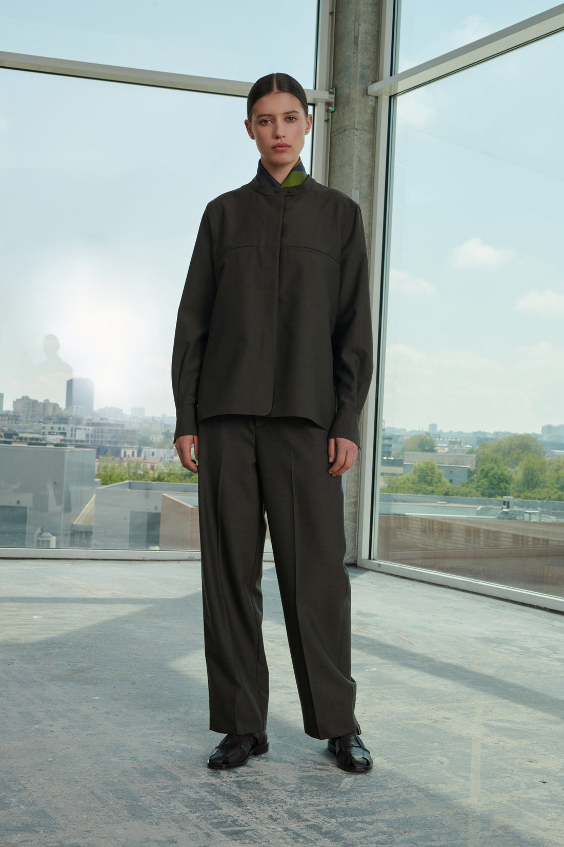 VESTA est une chemise à l'allure minimaliste. Une discrète patte de boutonnage habille le col, et la boutonnière est dissimulée sous un revers.