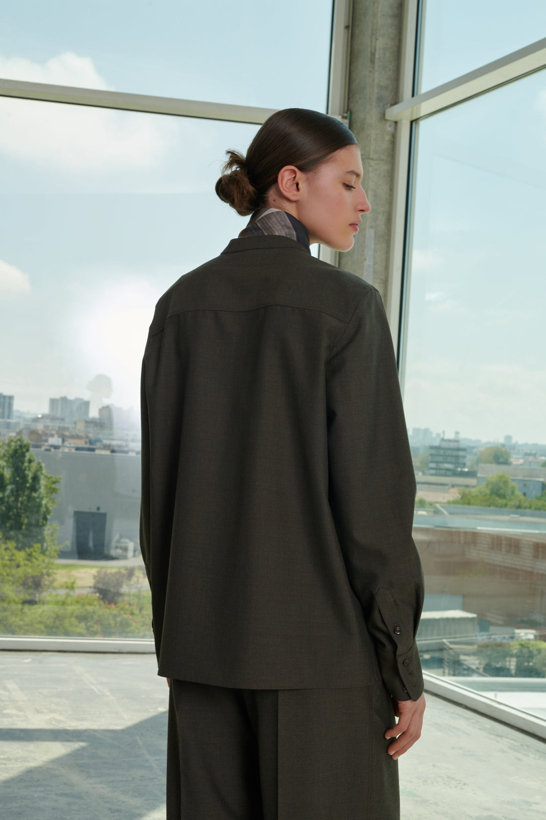 Chemise en toile de laine - Coupe droite- Encolure ronde avec patte de boutonnage- Poches passepoilées- Ouverture devant avec patte de boutonage cachée- Poignets de chemise boutonnés Cette pièce est certifiée OEKO-TEX Standard 100.