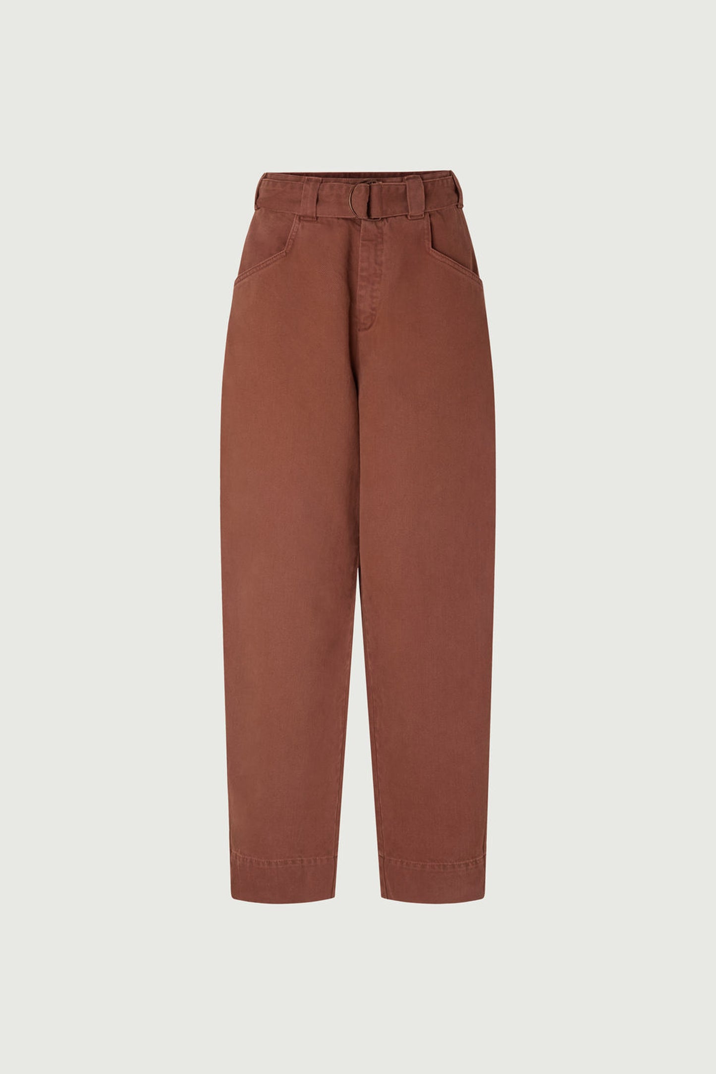VOLAGE est un jean taille haute qui s'ajuste grâce à une large ceinture coulissante. La toile de coton épaisse accentue son volume arrondi. Il est reconnaissable par ses poches à la découpe en biais. Les jambes sont volontairement longues pour varier les longueurs et pouvoir le porter retroussé.