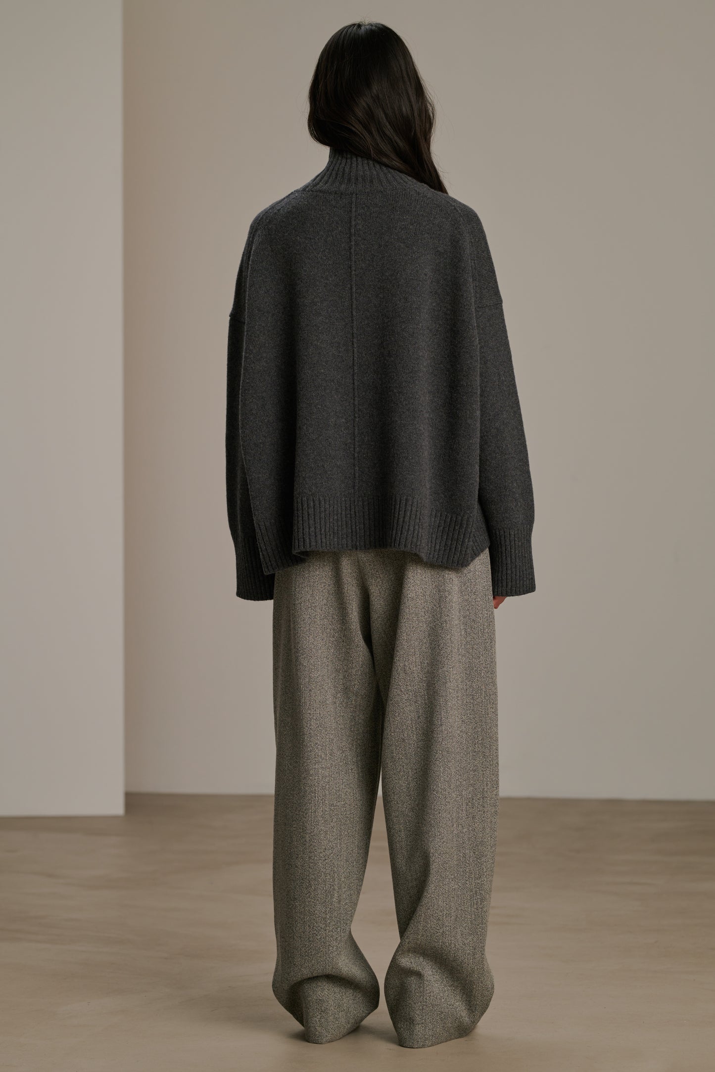 Pull col roulé oversize en laine gris foncé