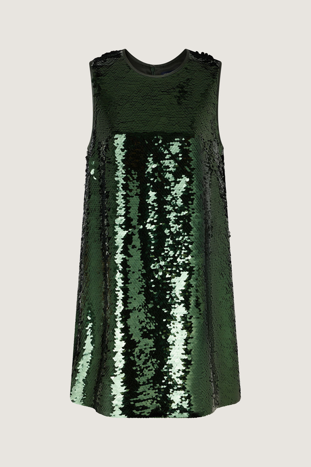 Robe à sequins verts- Coupe légèrement trapèze- Coupe courte, longueur au dessus du genou- Fermeture avec zip invisible au dos et crochet