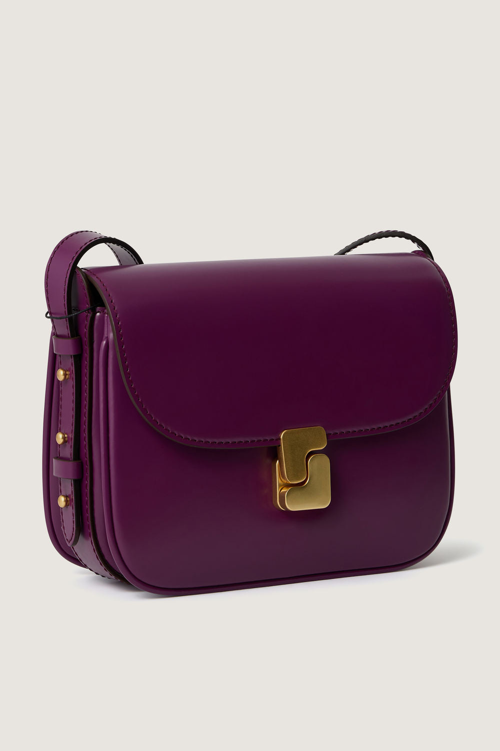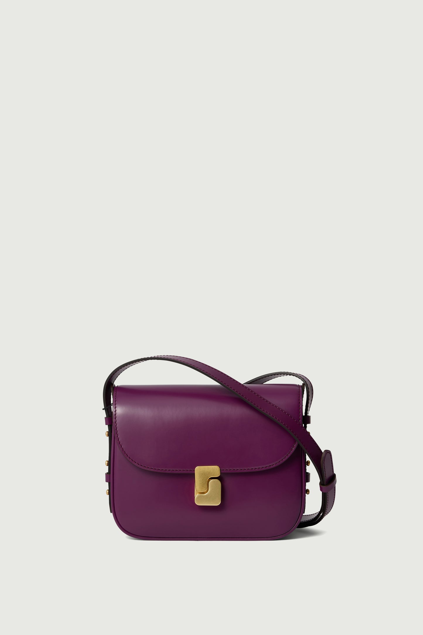 sac bellissima mini Sac monogramme "S" en cuir glacé pourpre