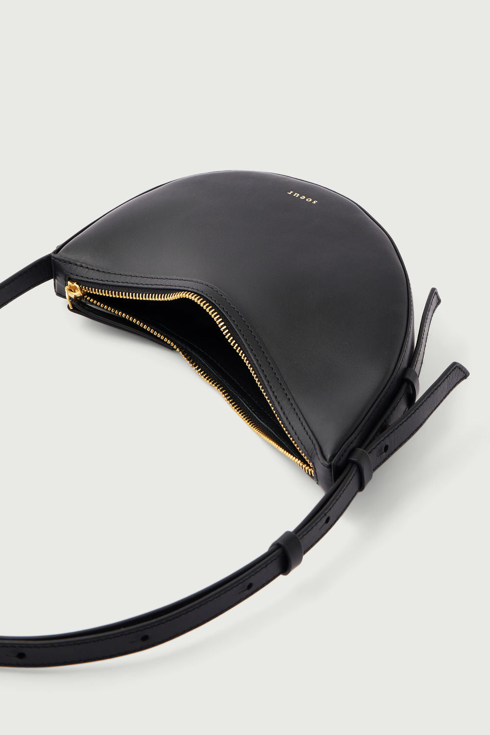 - Mini sac en cuir lisse noir porté épaule ou en bandoulière